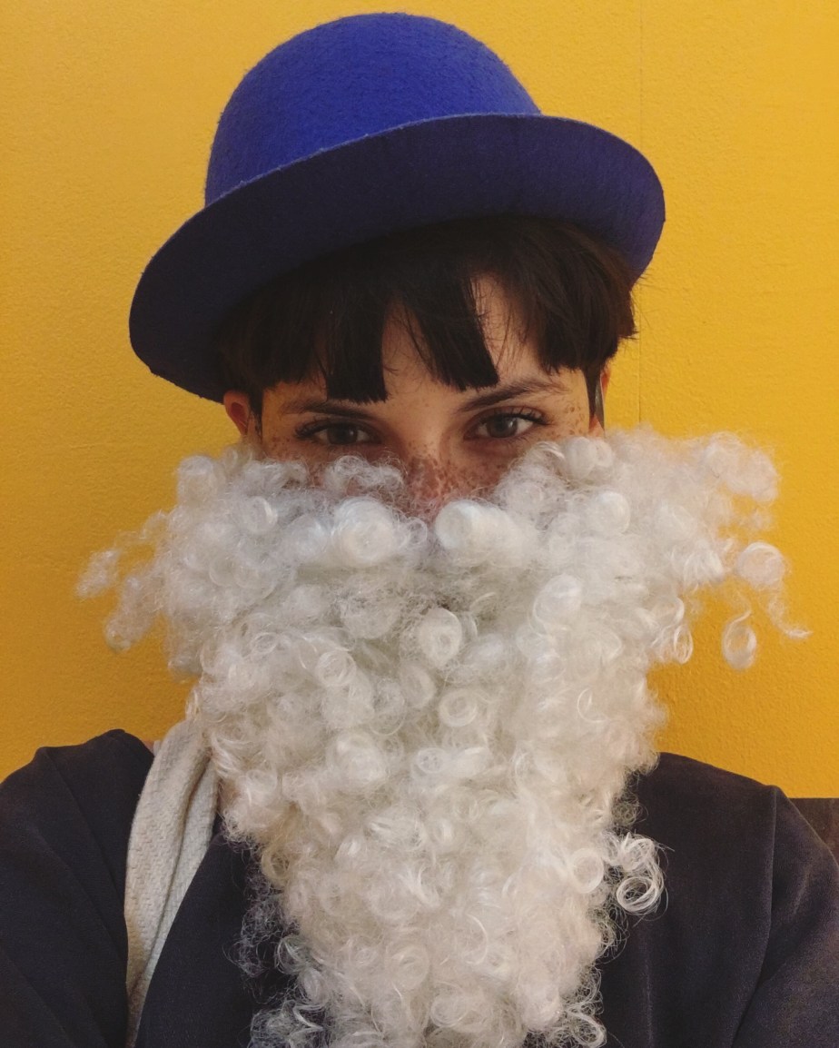 Además había una pieza para niños que estaba llena de juegos y cosas con la temática de la exposición. Entonces estaban los contornos de los retratos, en blanco y negro para que las pintara, había una pieza con disfraces iguales a los que usaban los pintores en sus autoretratos. Estaba lleno de juegos y cosas para niños, era de verdad muy bonito. Y nos hicimos un autoretrato (selfie):