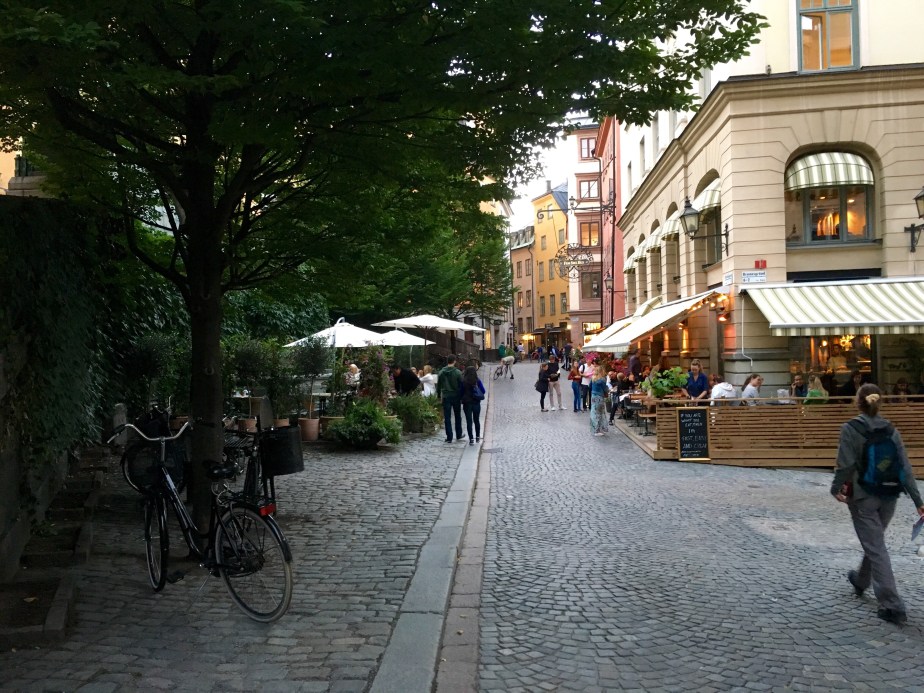 A pesar de partir súper temprano terminamos llegando a la pieza tipo 15:30 y en Estocolmo la mayoría de los museos cierran a las 5. Así que partimos igual al centro a recorrer las calles del barrio antiguo y sus al rededores. Era muy bonito, pero muy especial también. Los edificios suelen ser rígidos sin ningún tipo de adorno, balcón o entrada especial (Muyy al contrario a los de París). Pero siempre está pintados de colores como rojo o amarillo, y en su conjunto se ven muy bonitos. La parte más vieja es una isla que se llama Gamla Stan que tiene varios museos y edificios antiguos que son bien magníficos, calles angostas que son solamente peatonales y muchas tiendas para turistas. Cuando nos bajamos del metro vimos mucha gente corriendo con el celular en la mano… Obviamente era Pokemon Go! Y lo peor es que no solo eran niños, habia gente adulta, extrangeros, etc etc. La gente que estaba sentada en los cafés estaba jugando también. Parece que en Chile la cosa está así desde que salió, pero en París al menos no se ve a casi nadie jugando. Quedamos pa la cagá! Además mención especial a una tienda que vimos que era EL PALACIO del niño rata, era una tienda gigante dedicada a vender libros, peluches, llaveros y todo tipo de artículos de libros de ciencia ficción o de fantasía. Había un mostrador lleno de réplicas de las varitas mágicas de Harry Potter!