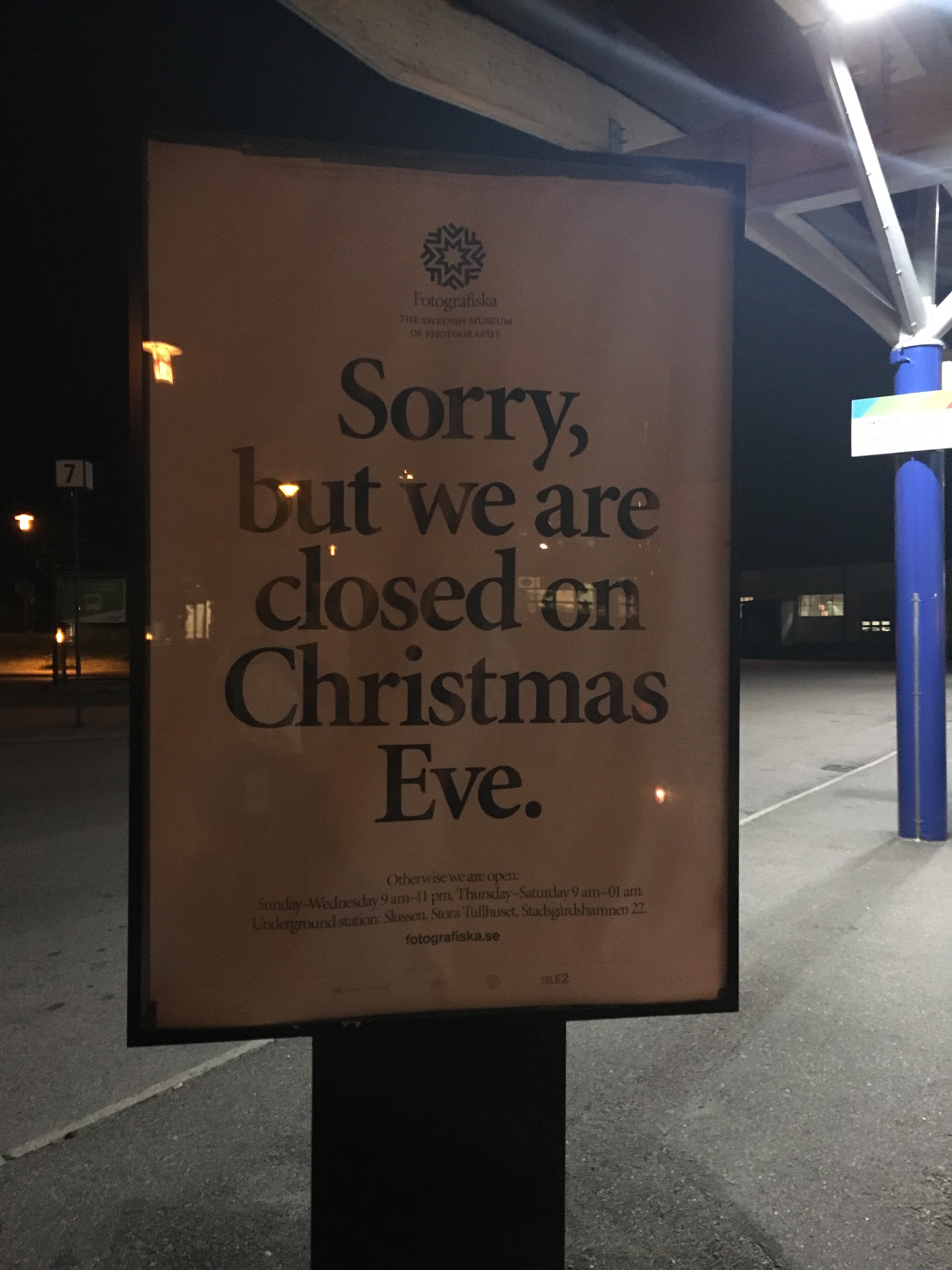 Ahora viene la parte diabólica. El tren duraba 5 horas y media, de manera que llegábamos a las 21:45 a Estocolmo y teníamos que esperar en la estación hasta las 3:30 para tomar el bus que nos lleva al aeropuerto y luego tomar el vuelo a las 7:00. Una vez que aterrizamos en parís hay que tomar otro bus de una hora hasta Porte Maillot y ahí recién tomar metro para llegar donde la Patou. Como si eso fuese poco, tuvimos un problemita con la espera en la estación, porque a medianoche nos echaron y podíamos volver recién a las 3:00! Estábamos cansadísimos, súper cargados y además nos dejaron en la calle en la estación de trenes (que siempre está lleno de borrachos y gente rara). Lo mejor que pudimos hacer fue ir al McDonalds de al frente que estaba lleno de vagos y gente borracha gritando, obviamente no era demasiado agradable sumado a que cerraba a las 2:00, por lo que igual no nos servía para toda la espera. Así que partimos en busca de otro McDonalds que estuviese abierto 27/7 y encontramos uno como a 20 minutos… Hay que dejar en claro que no somos fans del McDonalds como para salir a buscarlos en la madrugada, sino que es porque es el único lugar de mierda que abre continuo…