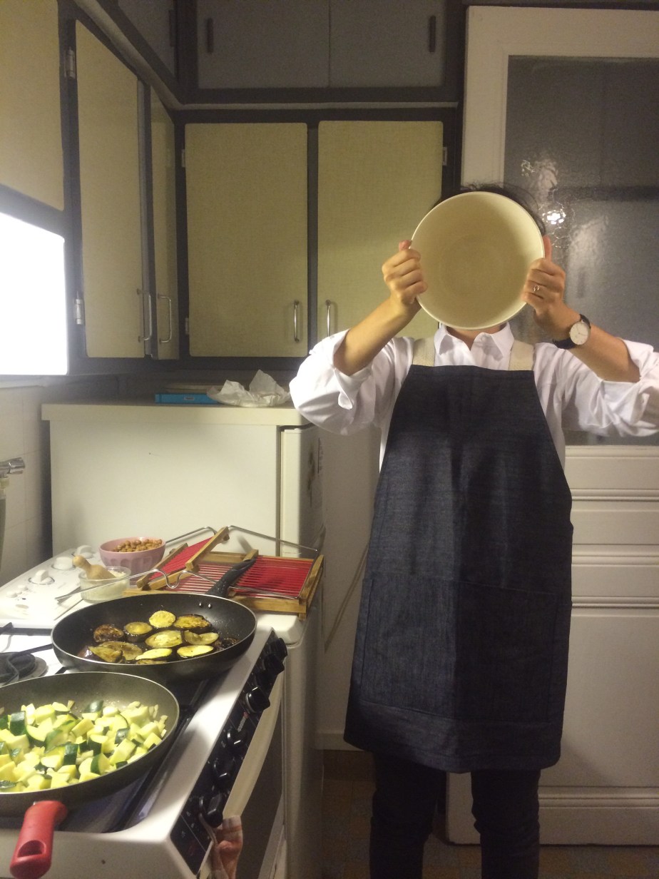Ahora estamos haciendo cous cous con verduritas salteadas: champiñones, berenjena, zapallito italiano y cebolla.