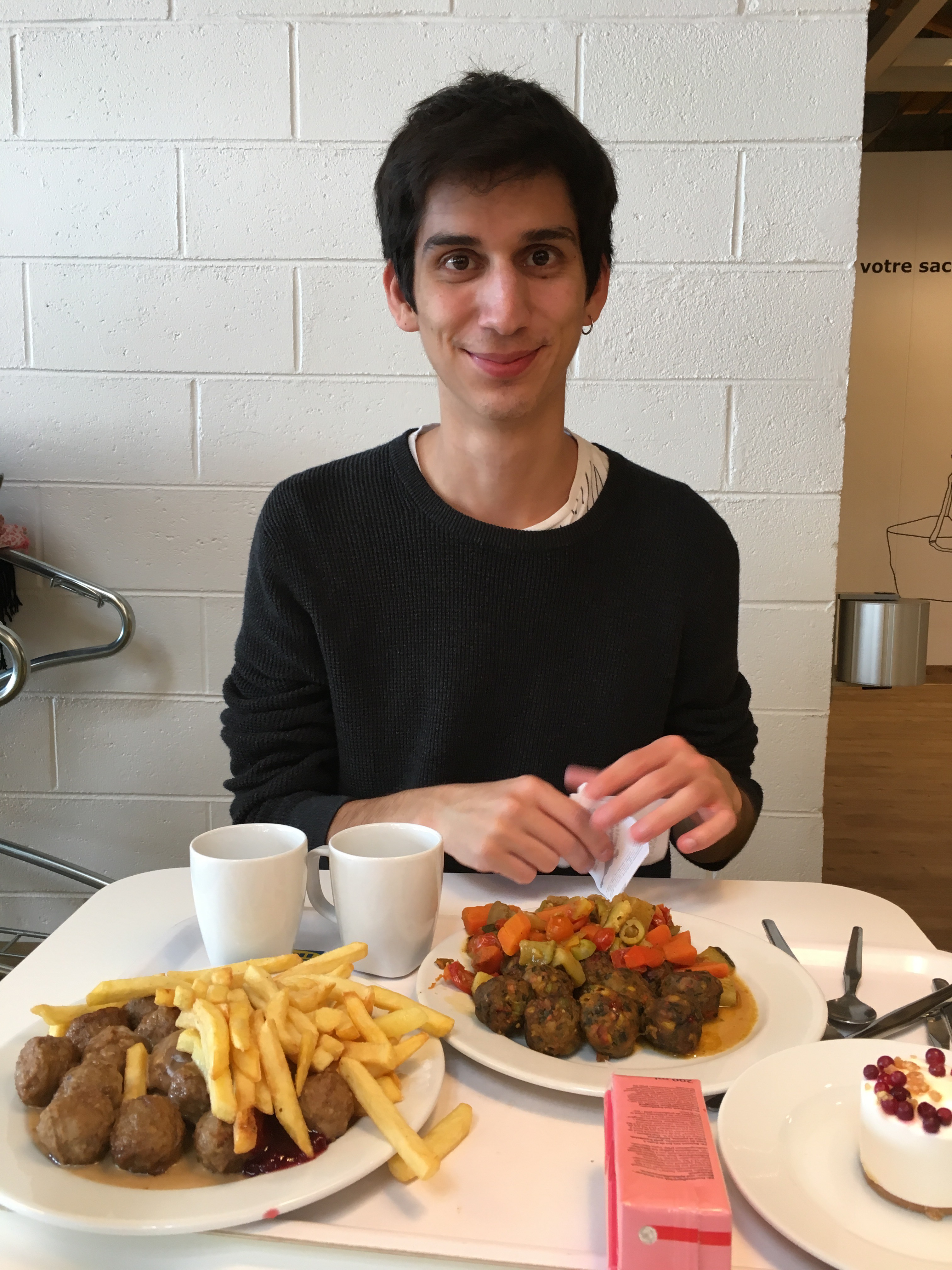 Ayer decidimos partir a Ikea en el bus gratuito que sale los miércoles, sábados y domingo. Nos costó levantarnos porque nos dormimos tarde pero lo logramos: tomamos el primer bus!Llegamos como en 15 minutos porque a esa hora no había taco y sin cachar mucho llegamos al «casino» y tomamos desayuno (de nuevo) por un euro! (Compramos tres barras de chocolate también y nos cobraron solo dos).