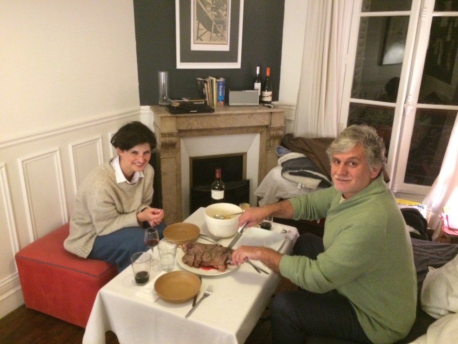 Hoy llego el gordo. Lo fui a buscar al aeropuerto y nos volvimos en RER. El vuelo aterrizó a las 8:10 y yo llegué tipo 8:50, así que obviamente tuvo qué esperarme un poco sentado tomándose un café. Fue muy rico verlo y contarle como hemos estado armándonos en nuestra primera casa de puchuncos.