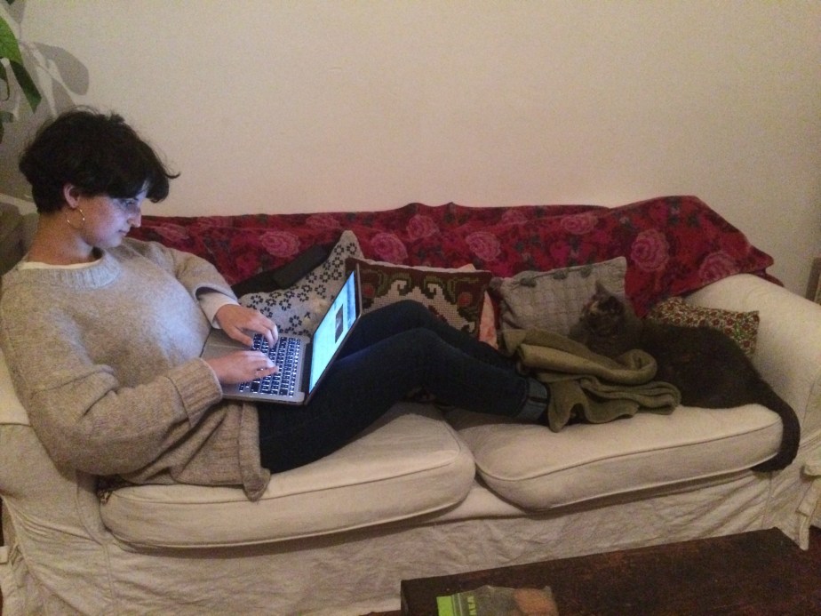 Ahora estamos los dos instalados en el living del departamento, yo con el gato (Hildegaard) en mis pies y maldi comiendo pan al lado mío.