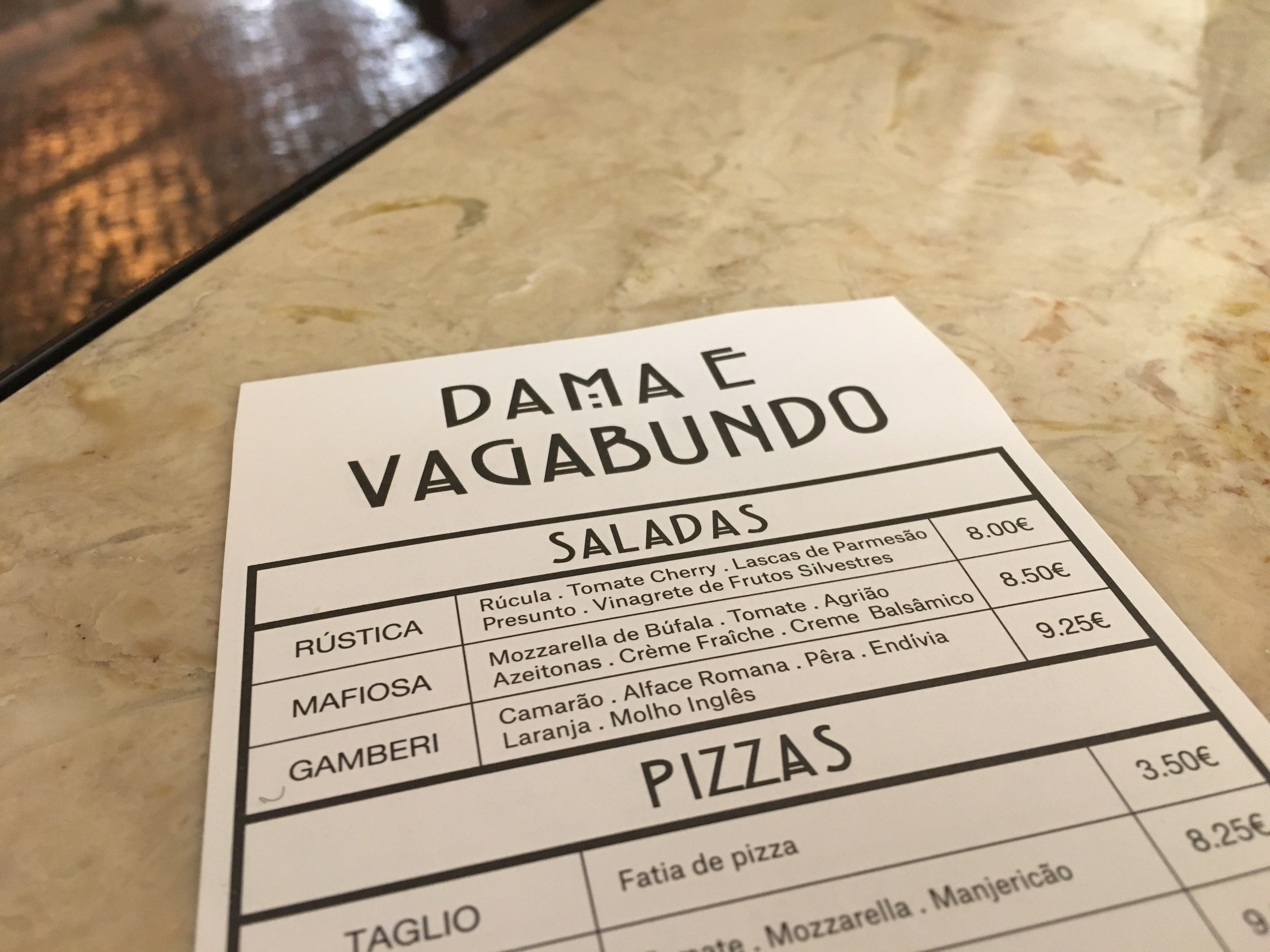 Cuando pasamos en el taxi vi una pizzería que se veía preciosa así que le dije al maldi que fuéramos. Se llamaba Dama e Vagabundo y nos comimos una pizza vegetariana (berenjena, zapallo, zapallito italiano y champiñones) y la pizza lisbona (cebolla, zapallo, salchicha y champiñones ostra) ahh y nos tomamos unas limonadas! Estuvo rico y fue un buen comienzo lisbonés jajaja