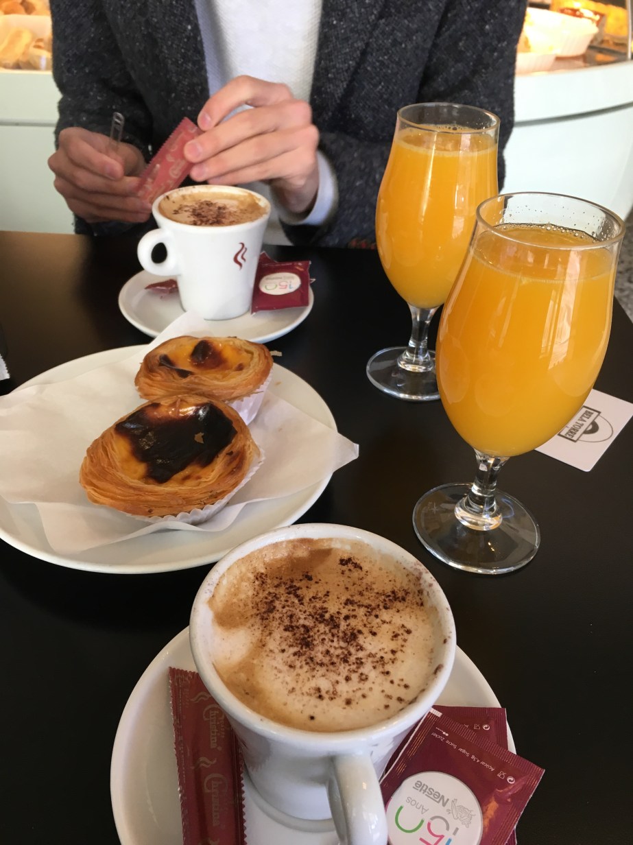 Hoy partimos de vuelta a Parichi, asi que partimos relativamente tempranín a ordenar y bañarnos (Algún día que sea!). El plan claramente era salir más o menos rápido para tomar desayuno en algún lugar rico y partir en metro al aeroporto. Decidimos ir a desayunar al mismo lugar en que compramos cositas para el desayuno de aniversario. No es un lugar demasiado lindo, como dijera yo. Pero es rico y tiene su onda, como fuente de soda pero versión cafetería. Nos pedimos un café, jugo de naranja y pasteis de nata cada uno, estaban todos wendis. Nos sentamos atrás de la puerta y cada vez que alguien entraba o salía nos cagábamos de frío, entraba un viento maquiavélico (Claramente no era maquiavélico, sino diabólico. Pero me encanta que la palabra ‘Maquiavélico’ adquiere una connotación maléfica solo por como suena).